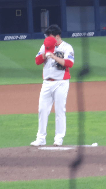 8회 초에 올라온 우리의 귀염둥이 투수