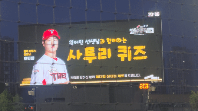 이닝교대 이벤트로 이호민, 성영탁 선수의 사투리 교실이 진행됩니다.