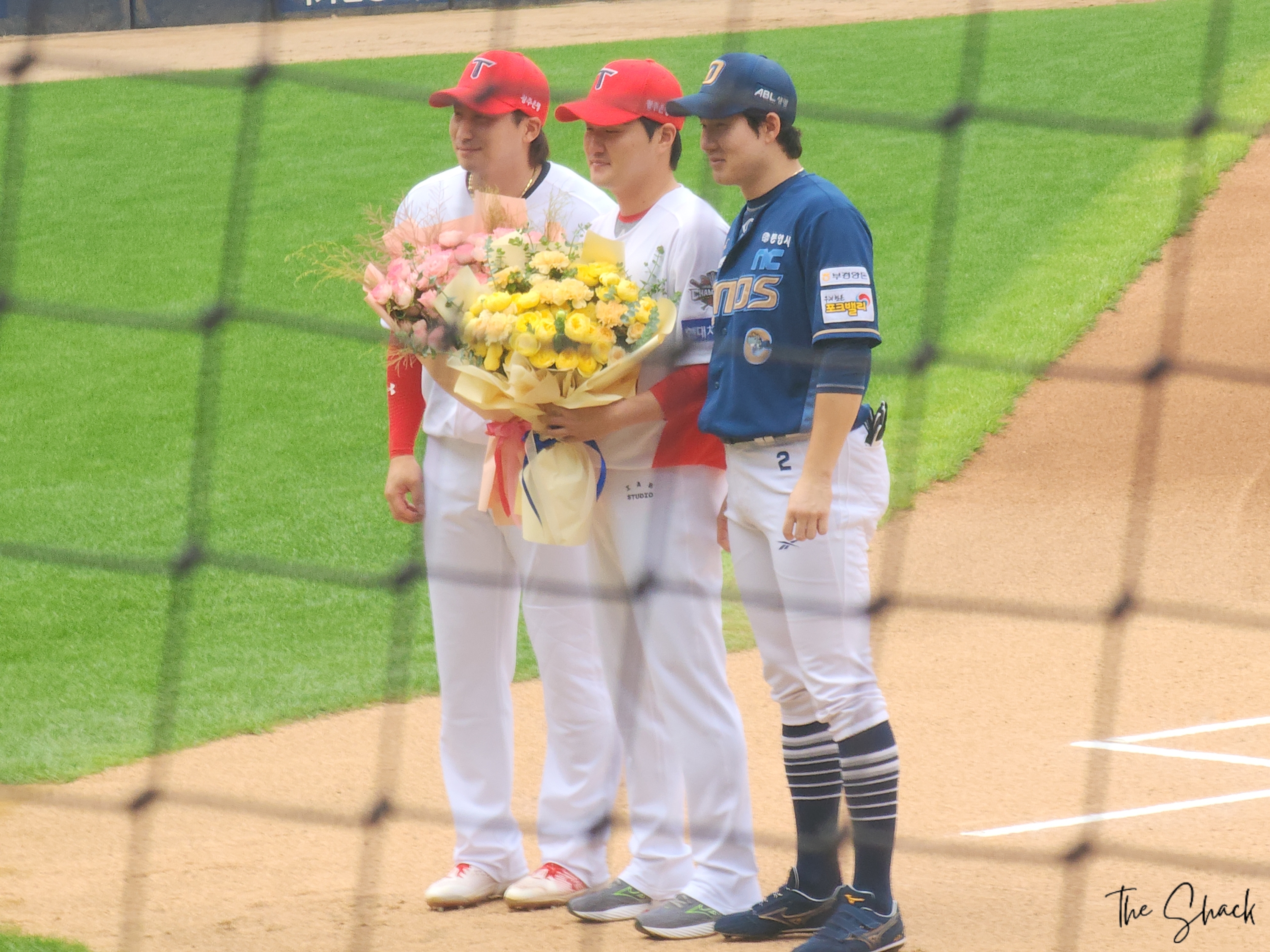 각팀 주장님들이 꽃다발을 전달해주고