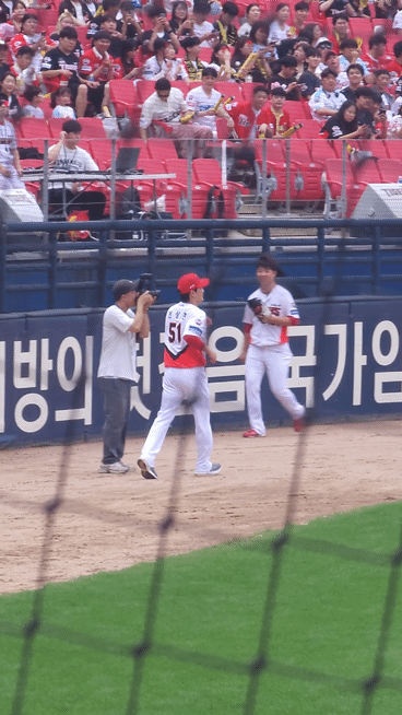 불펜장으로 가는 이호민 성영탁 선수와도 인사를 합니다. (복덩이 2명 또 지나가욥~)
