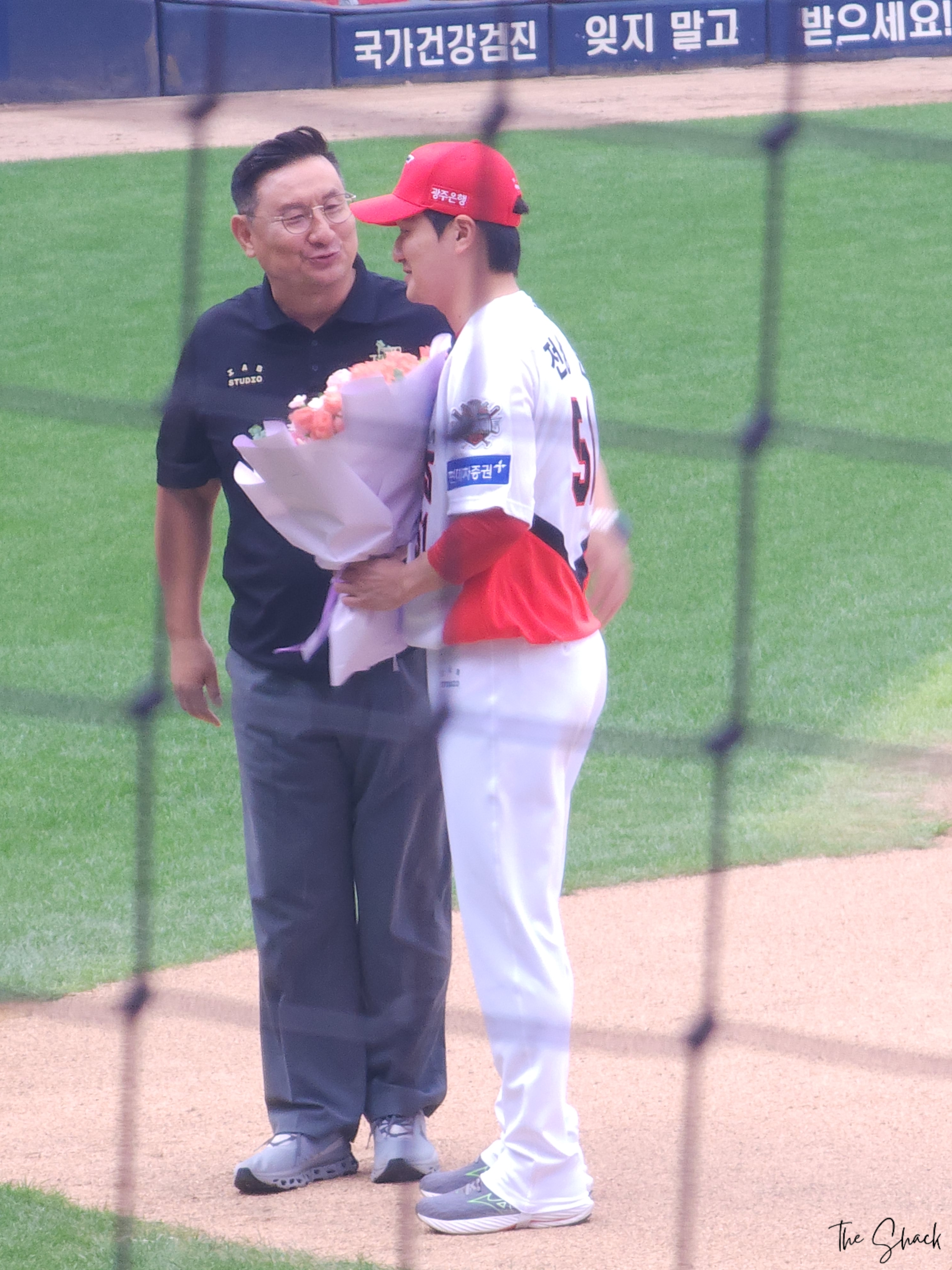 섹시투수 전상이 터벅터벅 걸어나와서 인사를 하고